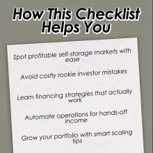 This isn’t just a basic to-do list—it’s a step-by-step roadmap designed to save you time, avoid costly mistakes, and help you spot great opportunities in the booming world of self-storage real estate investing.