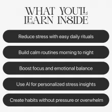 This isn’t about perfection. It’s about progress. You’ll gain a clear, easy system for bringing calm into your every day without needing hours of free time or expensive tools. Just simple, effective practices built around real life.