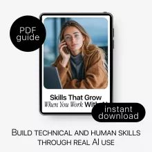 Working with AI isn’t just about learning new tools—it’s about growing smarter, faster, and more valuable in your career. Skills That Grow When You Work with AI is a practical, easy-to-follow digital guide designed to show you exactly how hands-on AI experience strengthens both your technical and human skills. Whether you’re curious about AI or already using it at work, this resource helps you turn everyday AI use into real professional growth.