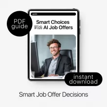 Unlike generic career advice, this guide combines practical decision-making frameworks with real AI workflows you can apply immediately. You’ll see exactly how to turn job offers into clean, comparable data, how to ask AI the right questions, and how to interpret its output like a human—not a robot. The included case study shows the full process in action, giving you a model you can follow with your own offers.