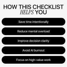 If you’re ready to experience the real ai impact on office productivity without burnout or chaos, download this checklist today. Use it once for a reset or revisit it anytime your workflow feels noisy. Add it to your digital toolkit and start working smarter, not louder.