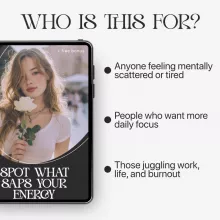 Download “Spot What Saps Your Energy” now and start discovering where your focus goes—and how to protect it. Learn how to see what drains my mental energy and build a life that feels calmer, clearer, and more energized.