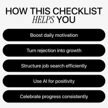 • Use AI as Your Positivity Partner: Reframe rejection, generate affirmations, brainstorm new career paths, rewrite resumes and cover letters, and receive daily motivational prompts.