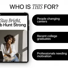 Unlike other digital job search guides, Stay Bright, Job Hunt Strong doesn’t just focus on applications and resumes—it prioritizes mental well-being, motivation, and sustainable progress. With a unique combination of actionable tasks and AI for staying positive during a long job search, it empowers you to stay strong, focused, and resilient every day.