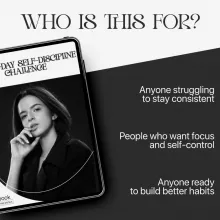 This self discipline challenge ebook is perfect for students, entrepreneurs, remote workers, fitness enthusiasts, and anyone who wants more structure and consistency in their life. If you struggle with procrastination, lack of focus, or building habits that last, this guide was made for you. It’s also ideal for beginners who want to start simple and for advanced self-improvement seekers who need a structured reset.