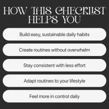 If you’re ready to finally stop starting over and start building habits that actually stick, this checklist is for you. Download The Effortless Routine Builder today and take your first step toward creating a routine that feels calm, natural, and supportive instead of stressful. Your future self will thank you.