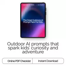 Download The Great Outdoors AI Prompt Pack for Kids today and turn every outdoor moment into an unforgettable adventure. Perfect for busy adults who want easy, imaginative, and educational fun—just open, pick a prompt, and let the discoveries begin!
