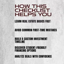 This isn’t just another eBook. It’s a ready-to-use action checklist built for students who are serious about investing, even with limited money and time. If you’re one of the college students investing in real estate, this is your head start. Download The Ultimate College Investor’s Action Checklist today and take the first smart step toward owning your future.