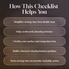 This is for solopreneurs, small business owners, startup founders, and strategy-curious creatives who want a clear, structured guide to business strategy analysis. If you’re tired of vague advice and want a tool that helps you take real, measurable action—this checklist is for you.