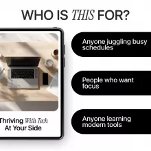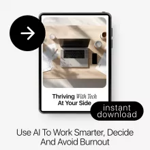 Feeling overwhelmed by endless tasks, decisions, and digital noise? Thriving with Tech at Your Side is a practical, easy-to-use checklist designed to help you harness the ai impact on work life in a way that actually supports your productivity, focus, and well-being. Instead of adding more tools to your plate, this digital checklist shows you how to use AI intentionally—so it works for you, not the other way around.