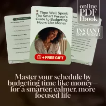 If you’ve ever felt like the hours in your day vanish without explanation, this is the game-changing resource you’ve been waiting for. Time Well Spent: The Smart Person’s Guide to Budgeting Hours Like Money is a practical, easy-to-follow eBook designed to help you master your time like a pro. Whether you’re an entrepreneur, student, overwhelmed parent, or just someone who wants more freedom in your schedule, this guide shows you exactly how to budget your time and take back control of your days—without burning out or giving up your goals.