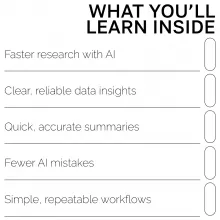 - Chapter 4 — Apply Insights in the Real World: Build workflows, validate AI-generated information, and expand your research toolkit.