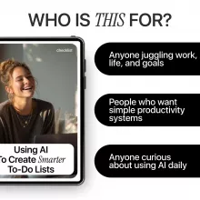 Whether your to-do list feels overwhelming or never-ending, Using AI to Create Smarter To-Do Lists is designed to help you regain clarity, focus, and control over your day. This practical digital checklist shows you exactly how to use AI tools to plan, organize, and prioritize tasks in a smarter, faster way. Instead of spending hours deciding what to do next, you’ll learn how to let AI do the heavy lifting—so you can focus on what actually moves the needle in your work, studies, or business.