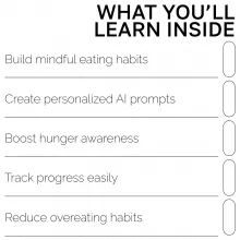 - Chapter 3: Practical Techniques for Daily Mindful Eating — Using AI to track your meals, journaling prompts, and mistakes to avoid.