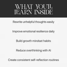 Unlike generic mindset guides, this resource focuses specifically on blending cognitive reframing with AI tools. It doesn’t just teach theory, it shows you how to use ai to rewrite unhelpful thoughts through real examples, tested prompts, and repeatable daily practices. You’re not just reading advice, you’re getting a usable system designed for modern life.