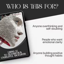 Once purchased, you’ll receive immediate access to your downloadable guide so you can start practicing how to use ai to rewrite unhelpful thoughts right away, at your own pace, on any device.