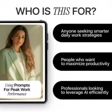 This guide is perfect for professionals, managers, freelancers, and anyone who wants to make AI a real partner in boosting productivity. Unlike other generic productivity eBooks, Using Prompts for Peak Work Performance focuses specifically on prompt guidance for work performance, combining actionable insights, case studies, and step-by-step frameworks you can implement immediately.