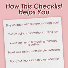 - Step-by-step saving plan tailored to help you build a smart wedding budget