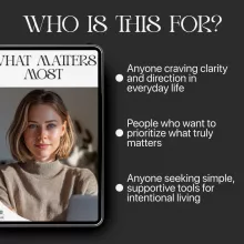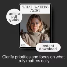 Get crystal clear on what truly matters in your life with What Matters Most, a transformative digital download designed to help you cut through noise, overwhelm, and constant busyness. This thoughtfully crafted guide eBook and bonus checklist walk you step-by-step through understanding your real priorities, choosing them with confidence, and staying aligned with them every single day. Whether you’re rebuilding focus, creating a more meaningful routine, or seeking a fresh sense of direction, this resource helps you reconnect with your values using simple tools—and even AI-powered clarity prompts.