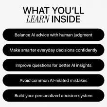 - Chapter 4: Building Your Own Decision System – Create simple rules for trusting or questioning AI, learn when to follow data vs experience, check if your choices still make sense, and plan your next steps.