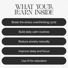 Unlike other stress or mindfulness resources, this ebook doesn’t just tell you to “breathe and relax.” It helps you understand the root cause of your restlessness using psychology, real-life case studies, and practical exercises. It also integrates AI tools to help you build personalized routines and analyze your stress patterns, making your relaxation journey more adaptive and modern.