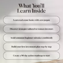 - Laying the Foundation: Discover funding options, build a strong team, and sidestep the common pitfalls that women in real estate investing often face—with a guided prompt to define your goals.