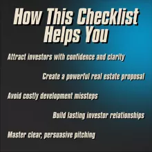 - Focused on Funding Success – Specifically built around how to get investors for real estate development.
