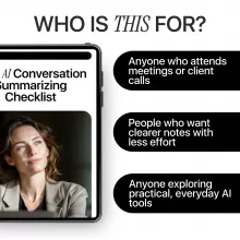 Stop rereading transcripts and replaying meetings. Download Your AI Conversation Summarizing Checklist today and start creating clear, confident summaries that save time, boost productivity, and open new opportunities. Instant digital download—get started in minutes.