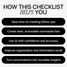 Your AI Conversation Summarizing Checklist – Digital Download Guide for AI Meeting Notes, Chat & Call Summaries, Productivity Workflow, and Smart AI Sidekick Use