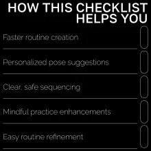 Unlike generic yoga guides, this checklist teaches you *how* to create routines that grow with you. By combining structured planning with AI-powered inspiration, it helps you design practices that feel personal, fresh, and aligned with your daily needs.