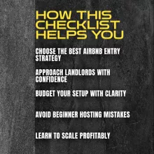 Dreaming of creating a profitable short-term rental business but don’t know where to begin? Your Airbnb Success Checklist is the ultimate step-by-step digital guide designed to help you confidently break into the world of Airbnb hosting. Whether you’re curious about how to get into Airbnb properties through rental arbitrage, co-hosting, or owning real estate, this downloadable checklist gives you the clarity and structure you need to start smart and grow fast. Packed with actionable steps and real-world insights, it’s your shortcut to turning ambition into income.