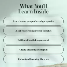 - Instant download—Start learning how to start buying investment properties right away.