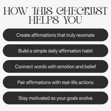 This checklist is perfect for anyone ready to shift their mindset and turn positivity into daily practice. Whether you’re working toward self-confidence, focus, or emotional balance, this guide makes affirmations simple, personal, and effective—no overthinking, just growth.