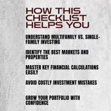 Unlike bloated eBooks or generic how-to guides, this checklist gets straight to the point. You’ll get the exact multifamily property investment tips you need — no filler, no guesswork, just results-focused planning. Created by investors, for investors.