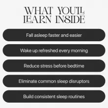 - Step-by-step guidance for building a realistic, sustainable sleep-friendly routine